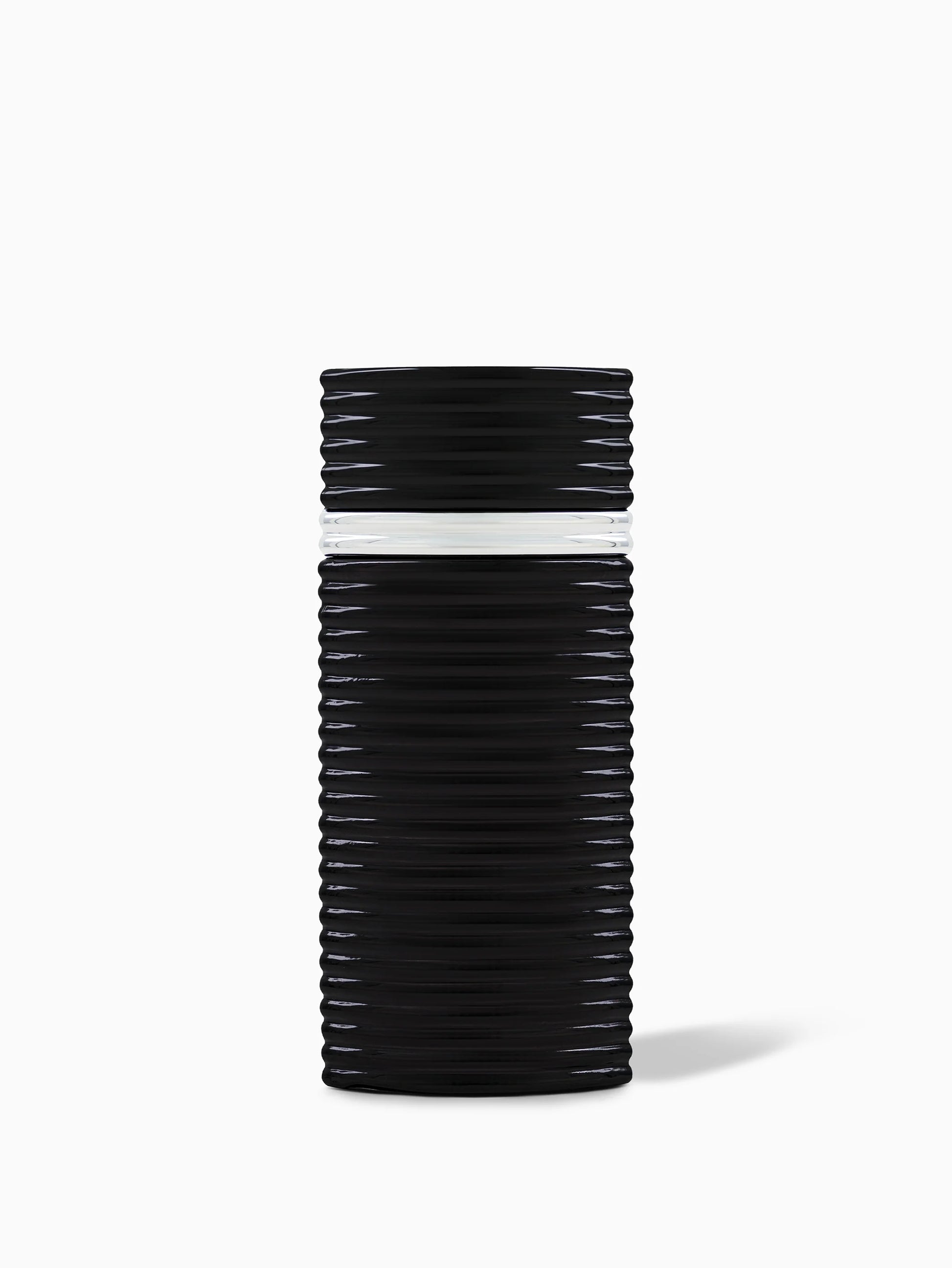 The base is a powerful trail of sandalwood, ambergris, oakmoss and musk. The glass bottle adorned with black stripes represents mystery, elegance & sophistication.